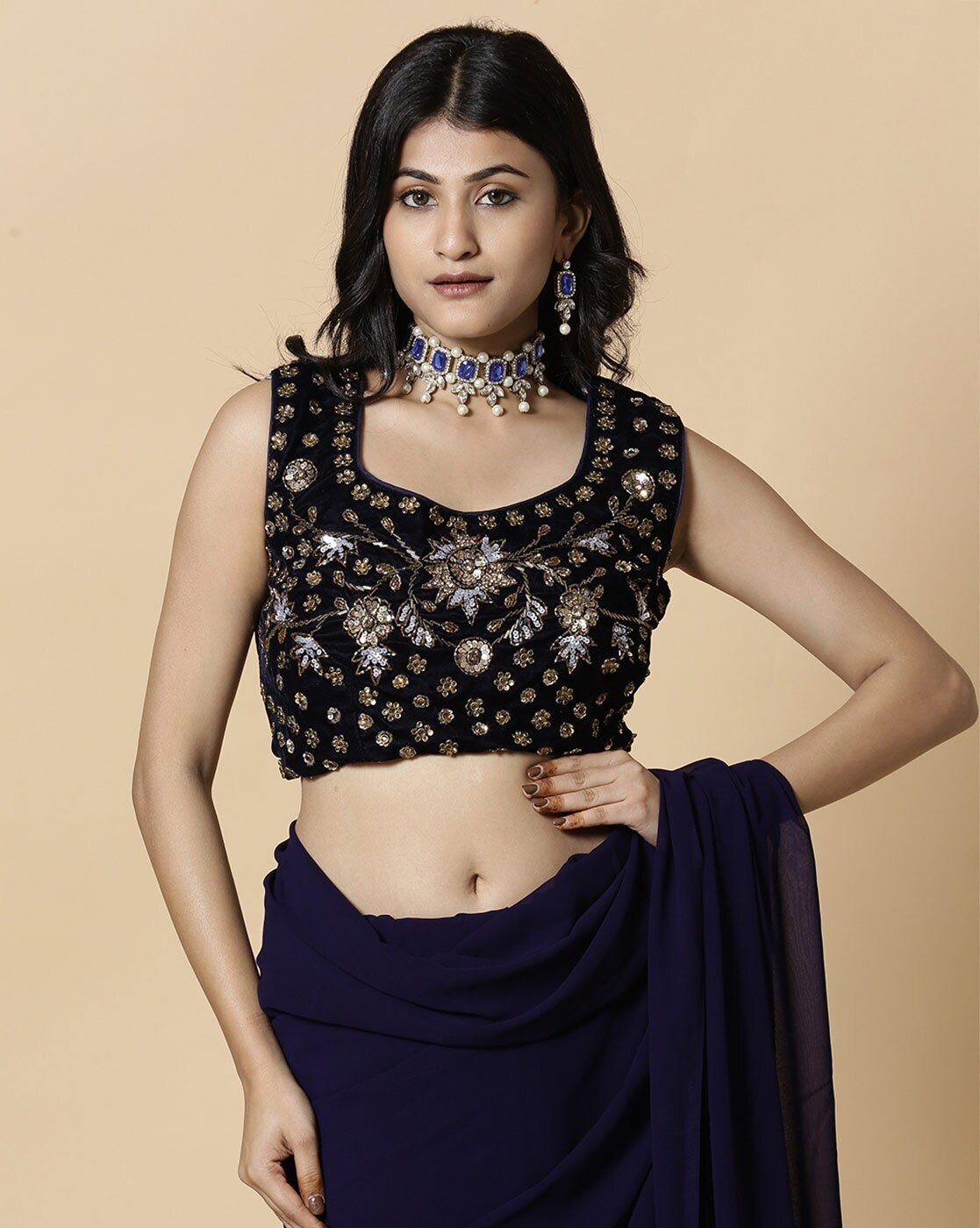 • The last image gives a detailed look of the blouse piece that comes with this saree (The model is wearing a blouse from our in-house wardrobe)